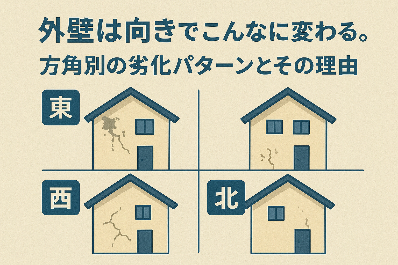 外壁は向きでこんなに変わる。方角別の劣化パターンとその理由【広島の屋根リフォーム・外壁塗装専門店 ヤネカベにむら】