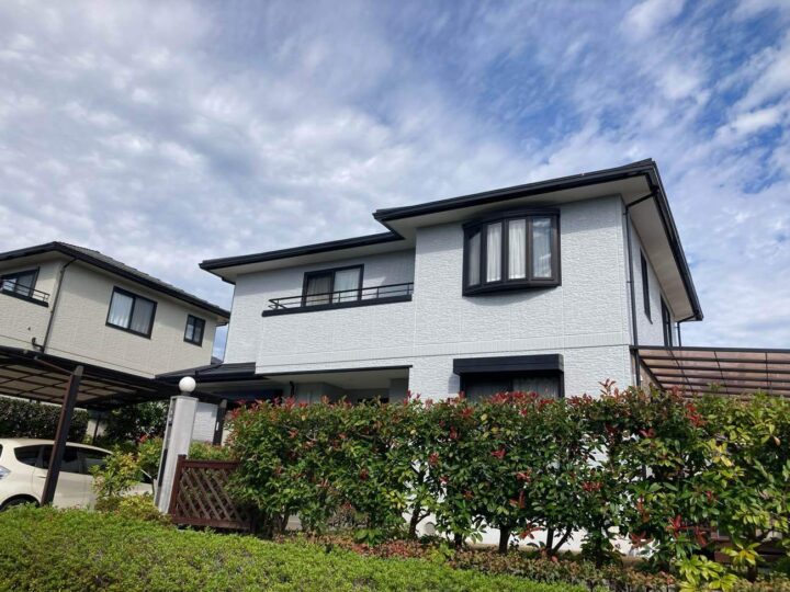 みなさんこんにちは! 広島の 外壁塗装 屋根塗装 屋根リフォーム専門店ヤネカベにむらです! 広島市安佐南区と安佐北区を中心に、広島全域に向け、品質保証の安心な工事をご提供致します! いつもブログをご覧頂き、誠にありがとうございます! コンクリート外壁の美観を保つ:長く愛される住まいのために 無機質でありながら洗練された印象を与えるコンクリート外壁は、現代建築において非常に人気のあるデザインです。打ちっぱなしのコンコンクリートが持つ独特の風合いや、重厚感のある佇まいは、多くの人を魅了します。しかし、その美しさを長く保つためには、適切な知識とケアが不可欠です。 「コンクリートだから丈夫だろう」と油断していると、いつの間にか汚れや劣化が進行し、せっかくの美観が損なわれてしまうことも少なくありません。コンクリート外壁の美しさを維持し、住まいの価値を守るために、知っておきたいポイントをご紹介します。 コンクリート外壁の美観を損ねる主な原因 1. 汚れの付着:雨垂れ、排気ガス、コケ・カビ コンクリートは多孔質(小さな穴がたくさん開いている状態)なため、空気中の汚れや水分を吸着しやすい性質があります。 雨垂れによる汚れ: 窓枠や笠木の下など、雨水が流れる場所に黒い筋状の汚れが付着することがよくあります。これは、雨水に含まれるホコリや排気ガスなどが付着し、堆積することで発生します。 排気ガス・粉塵: 幹線道路沿いや工場地帯に近い場所では、排気ガスやPM2.5などの微粒子が外壁に付着し、全体的にくすんだ印象を与えます。 コケ・カビの発生: 日当たりの悪い面や、湿気がこもりやすい場所では、緑色のコケや黒いカビが発生しやすくなります。これらは見た目を損ねるだけでなく、コンクリートの表面を劣化させる原因にもなります。 2. 白華現象(エフロレッセンス) コンクリートの表面に、白い粉状の物質や結晶が付着しているのを見たことはありませんか?これは**白華現象(エフロレッセンス)**と呼ばれるものです。コンクリート内部のセメント成分が雨水などによって溶け出し、空気中の二酸化炭素と反応して結晶化したもので、見た目を大きく損ねる原因となります。構造的な問題に直結することは少ないですが、美観を損なう厄介な現象です。 3. ひび割れ(クラック) コンクリートは収縮や膨張を繰り返す性質があり、これが原因で**ひび割れ(クラック)**が発生することがあります。初期の小さなひび割れは軽微なものが多いですが、放置すると雨水が侵入し、内部の鉄筋を錆びさせたり、コンクリートの爆裂を引き起こしたりする可能性があります。見た目を損ねるだけでなく、建物の構造的な劣化にも繋がるため、注意が必要です。 4. 経年劣化による変色・風合いの変化 コンクリートは紫外線や酸性雨などの影響を受け、徐々に表面が劣化し、色合いや質感が変化していきます。打ちっぱなしコンクリート特有のクールな印象が薄れ、古びた印象になってしまうことがあります。 コンクリート外壁の美観を保つための対策 1. 定期的な清掃 最も基本的な対策は、定期的な清掃です。軽い汚れであれば、柔らかいブラシと水洗いである程度落とすことができます。高圧洗浄機を使用する場合は、コンクリートを傷つけないよう、適切な水圧と距離を保つ必要があります。特に、コケやカビが発生しやすい場所は、専用の洗剤を使用して丁寧に洗い流しましょう。ただし、誤った方法での清掃は、かえってコンクリートを傷つけたり、汚れを広げたりする可能性があるので、不安な場合は専門業者に相談しましょう。 2. 保護材・撥水材の塗布 コンクリートの美観を長く保つために有効なのが、保護材や撥水材の塗布です。これらの塗料は、コンクリートの表面に膜を形成したり、撥水性を持たせたりすることで、汚れの付着や水分の浸透を防ぎます。 浸透性吸水防止材(撥水材): コンクリート内部に浸透し、撥水効果を発揮します。コンクリートの質感を変えずに汚れの付着や白華現象を抑制する効果が期待できます。 コンクリート保護塗料(クリア塗料): 透明な塗膜でコンクリート表面を保護し、汚れの付着を防ぎます。紫外線による劣化を抑制する効果もあります。 これらの処理は、美観維持だけでなく、ひび割れの発生抑制や中性化防止にも繋がり、コンクリートの寿命を延ばす効果も期待できます。 3. ひび割れの早期補修 小さなひび割れであっても、放置せずに早期に補修することが重要です。シーリング材やエポキシ樹脂などで適切に補修することで、雨水の侵入を防ぎ、内部の鉄筋の錆びつきやコンクリートの劣化を防ぐことができます。ひび割れの幅や深さによっては、専門的な知識と技術が必要となるため、専門業者に依頼するのが安心です。 4. 定期的な点検 コンクリート外壁の美観を維持するためには、定期的な点検が不可欠です。自分では気づきにくい劣化サインや、高所の状態などを専門業者に確認してもらう