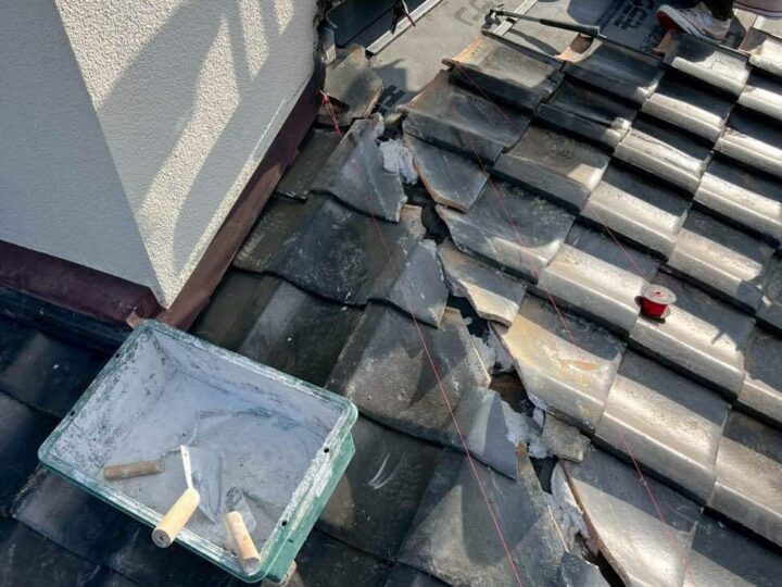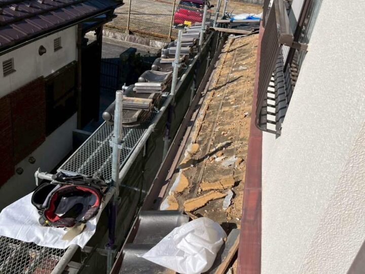 | 場所 | 軒天補修・土間補修・屋根一部葺き直し工事 |